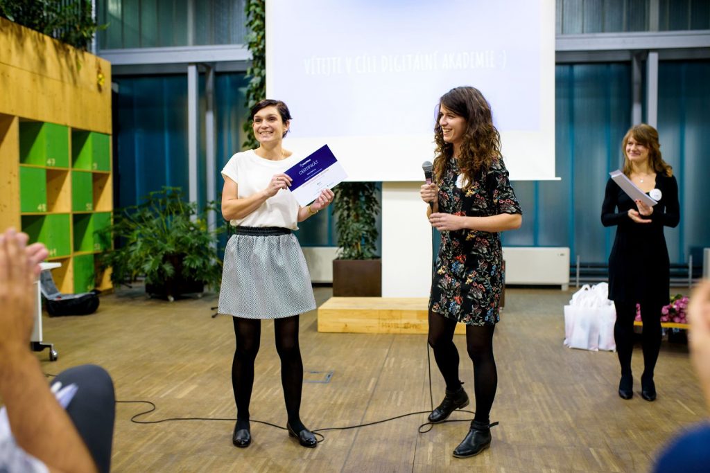 První hodinu jsem si říkala: „Jejda, vypadáme jako hodně různorodá skupina. Starší, mladší, maminky,“ přemýšlela jsem, jestli vůbec zapadnu. Trochu jsem ze začátku pochybovala o těch silných slovech, o kamarádkách z Czechitas, ale pochybnosti se brzo rozpustily. Utvořily jsme menší skupinky, ale přesto jsme byly schopny fungovat i jako celek, jako banda. Byl to šílený babinec, já jsem byla po dlouhé době v takovém kolektivu žen a vypadalo to někdy tak, že nám snad pusy upadnou. V takovém prostředí se člověk opravdu nebojí. Akademie a taky všechny exkurze mi dodaly odvahu. Prostě se nebát a zkusit to. Podpora za mnou a takové to „holky s holkama“, to, že na nic nejsem sama, že se podržíme. Bylo to vidět i v závěrečných projektech, když někomu něco nešlo, tak jsme si poradily. Je to taková komunita, která si pomůže.