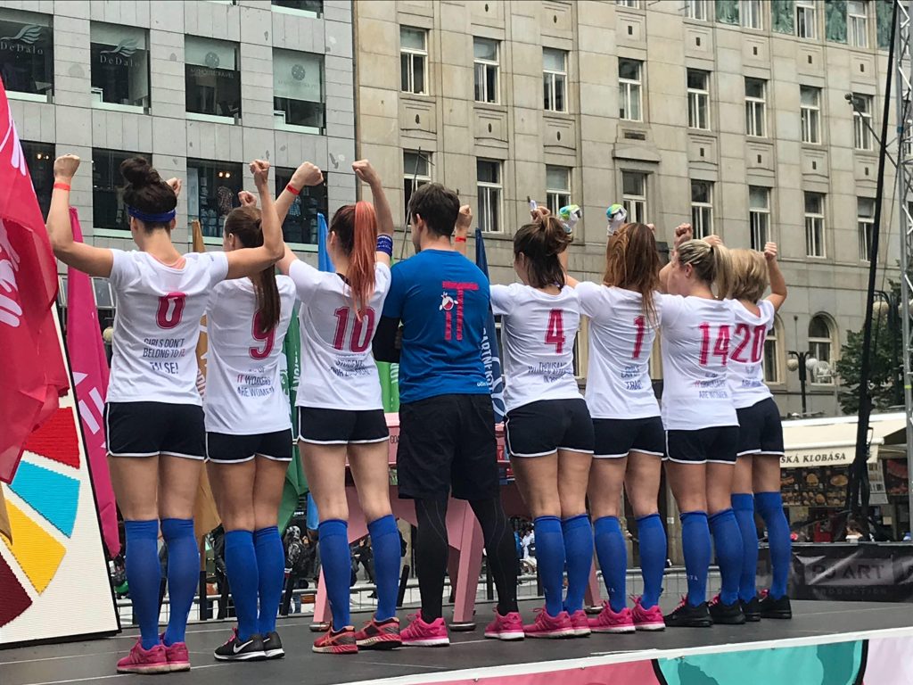 „Před měsícem jsme se potkaly, nakreslily si v Holešovické tržnici křídou na asfalt hřiště a branky a učily se kopnout do balónu. Sbíraly jsme noviny na výrobu třásní pro fanoušky, půjčily si tenisky a hrdě jsme stály mezi ostatními týmy na Václaváku,“ upřesňuje Dita přípravu celého týmu na turnaj.