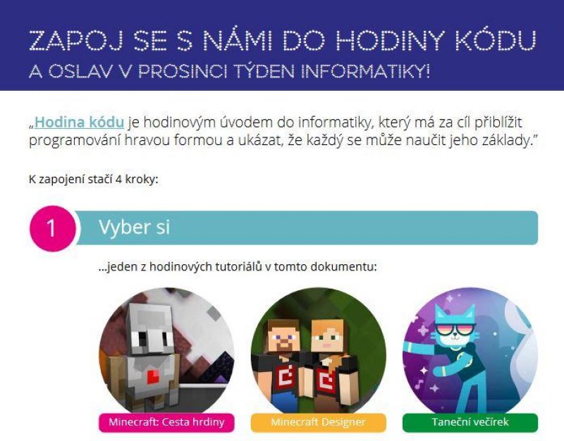 Na podzim se vždy zapojujeme do Hour of Code, tak pokud jsi to ještě nezkusil/a, tak ideální čas zkusit to s dětmi teď. Doma nebo ve škole. Můžeš si vybrat ze 4 jednoduchých tutoriálů, každý jde zvládnout zhruba za hodinku.