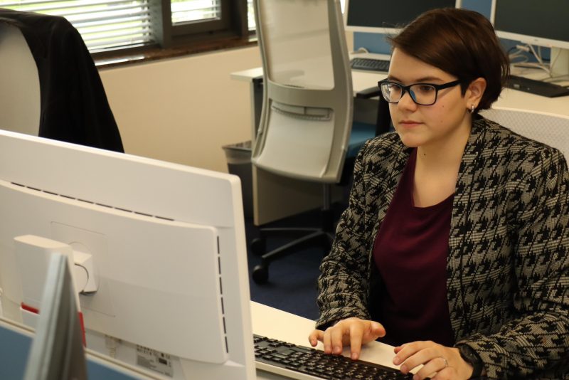 Před maturitou jsem se jako dobrovolník dostala na Machine Learning Prague, konferenci o strojovém učení. Při procházení stánků mě zaujala firma Konica Minolta, zabývající se AI v kancelářském prostředí. Měla jsem štěstí, že přijel i šéf R&D (Research and Development, pozn. red.) v Brně a dali jsme se do řeči. Dozvěděla jsem se, co dělají, a na oplátku jsem mu povyprávěla o mých SOČkách a projektech. Měli o mě zájem, já u nich chtěla působit, a tak jsme si plácli. Hned po maturitě jsem u nich brigádně začala pracovat. Jsem v týmu věnujícímu se zpracování přirozeného jazyka a mám vlastní projekty na klasifikaci dokumentů. Nejúžasnější na Konice jsou kolegové. Jsou zkušení, vtipní, neformální, přátelští a berou mě. Celkově si nedokážu moc představit lepší místo, kde pracovat.