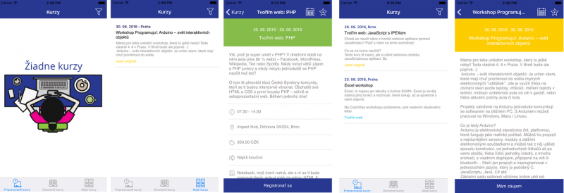 Bolo mi jasné, že sama naštudovať toľko tém nezvládnem a vo chvíli, keď som si už povedala, že vo firme ostanem na pozícii backendu/api a na strane mobilu iba v rámci analýzy, na Facebooku na mňa vyskočil príspevok Czechitas s ponukou na iOS kurz. Asi behom 10 minút som bola zaregistrovaná, plus som napísala všetkým z Czechitas, aby som sa ustila, že im moja správa prišla.